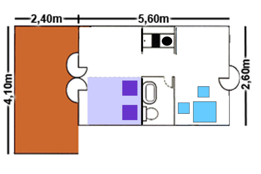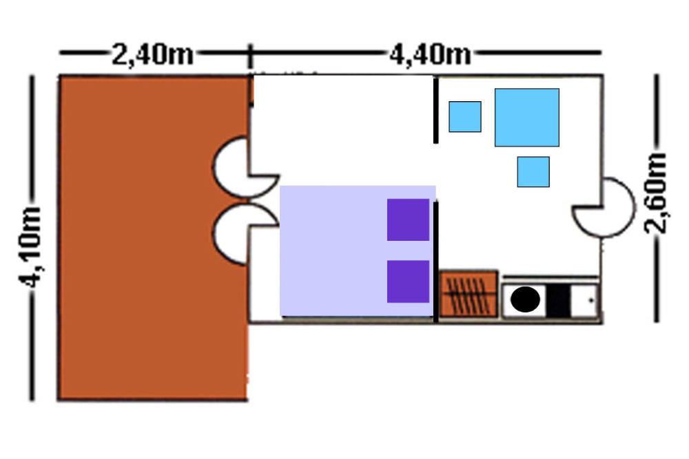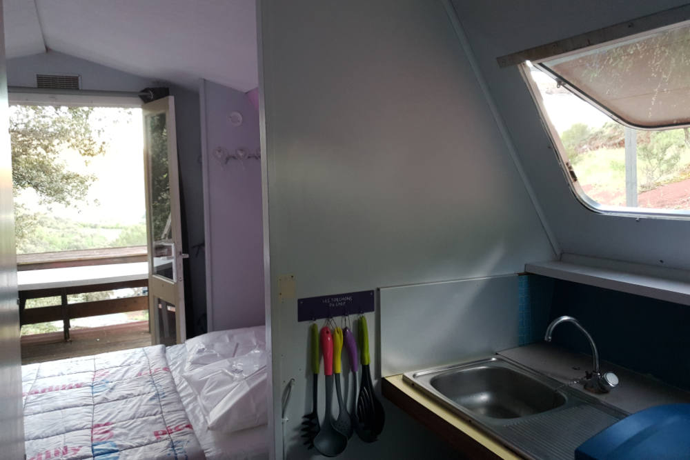 Nos Bungalows Cylhor sont de fabrication « artisanale ». Ce locatif est atypique par sa forme en alcôve.