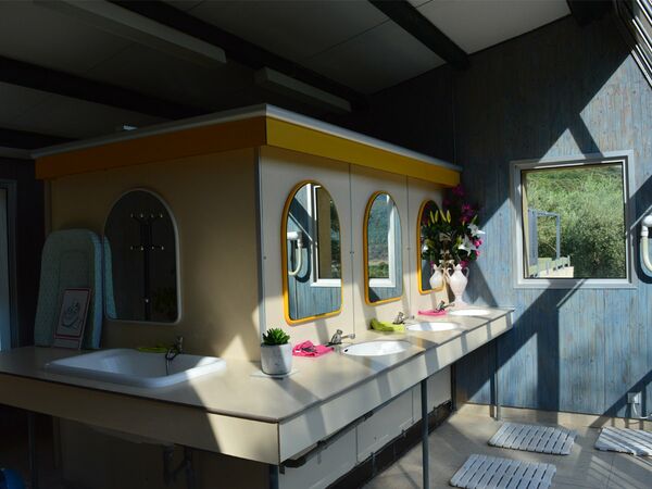 - 4 blocs sanitaires avec : 2 sèche-cheveux, baignoire bébé, table à langer, prises pour rasoirs et portables, eau chaude gratuite, WC, douches