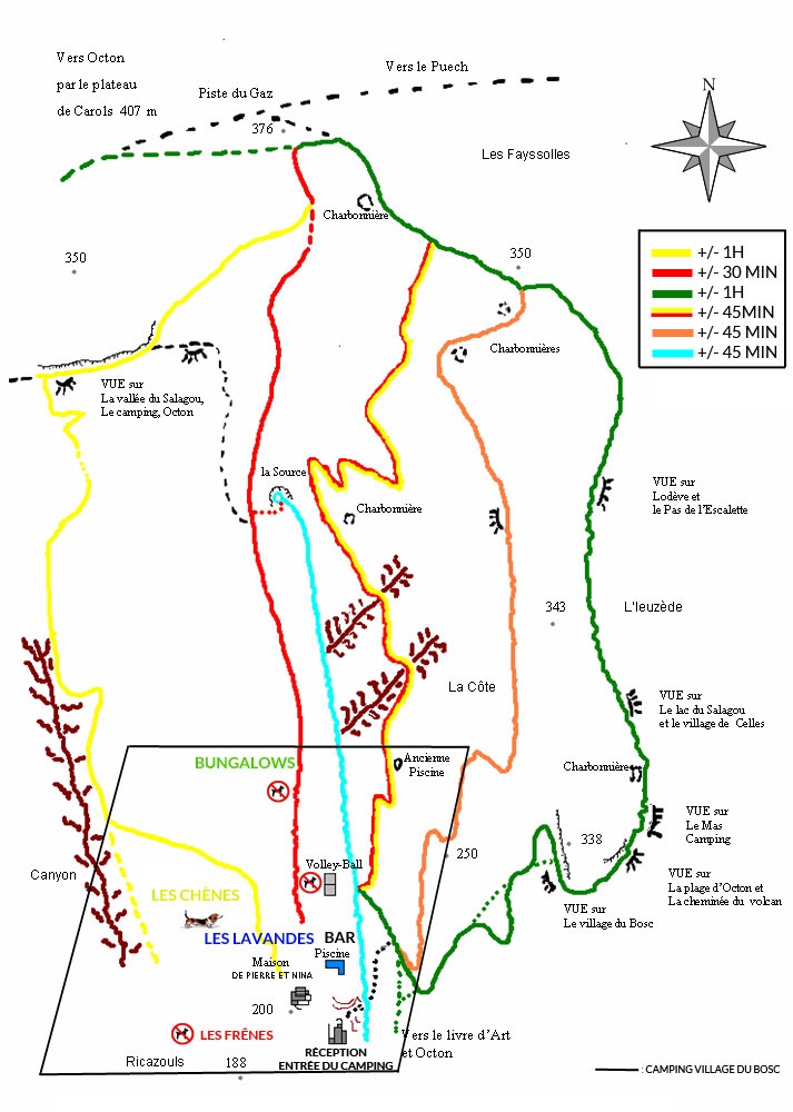 Voici quelques chemins de randonnée à l'intérieur du domaine naturiste (80 hectares), uniquement pour les vacanciers séjournant sur le camping :